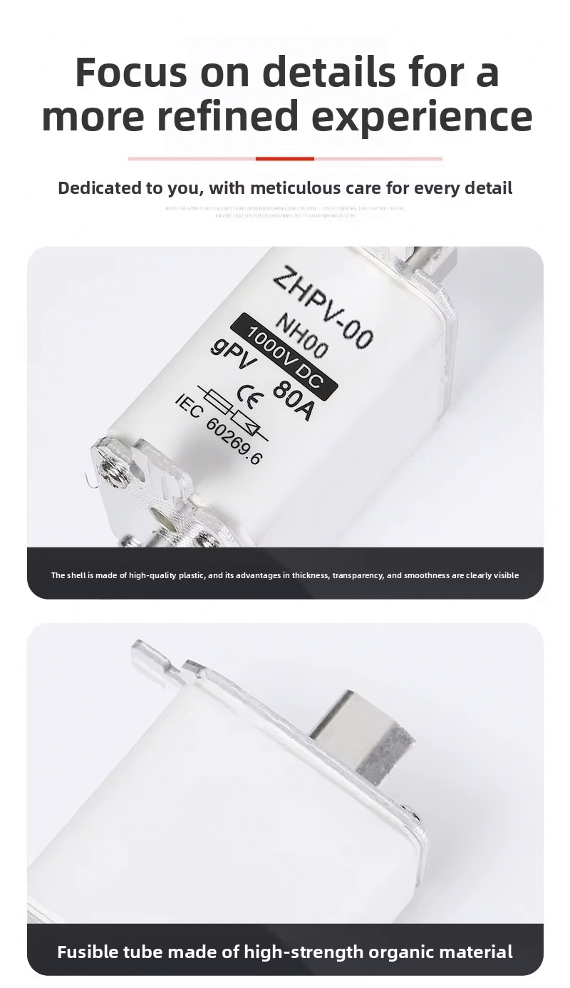 De NH00-1000V IEC laagspanning fotovoltaïsche meszekering kunststof 80A 6ka uitschakelcapaciteit is ontworpen voor efficiënte en betrouwbare circuitbeveiliging in fotovoltaïsche systemen en andere laagspanningstoepassingen. Deze hoogwaardige zekering werkt tot 1000 V, met een robuust uitschakelvermogen van 6ka, waardoor een veilige ontkoppeling wordt gegarandeerd in geval van overbelasting of kortsluiting. De nominale stroom van 80A maakt hem geschikt voor diverse PV-installaties en industriële bedieningspanelen.