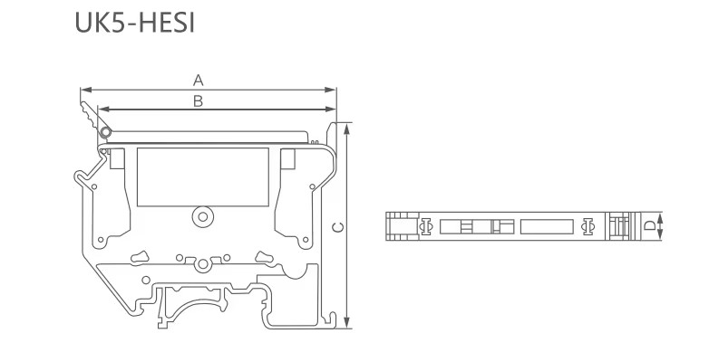 Type: UK5-HESI Fuse Holder Terminal Block kan worden gebruikt voor verschillende grootte van zekeringen, zoals 5x20, 5x25, 6x30, enz.
