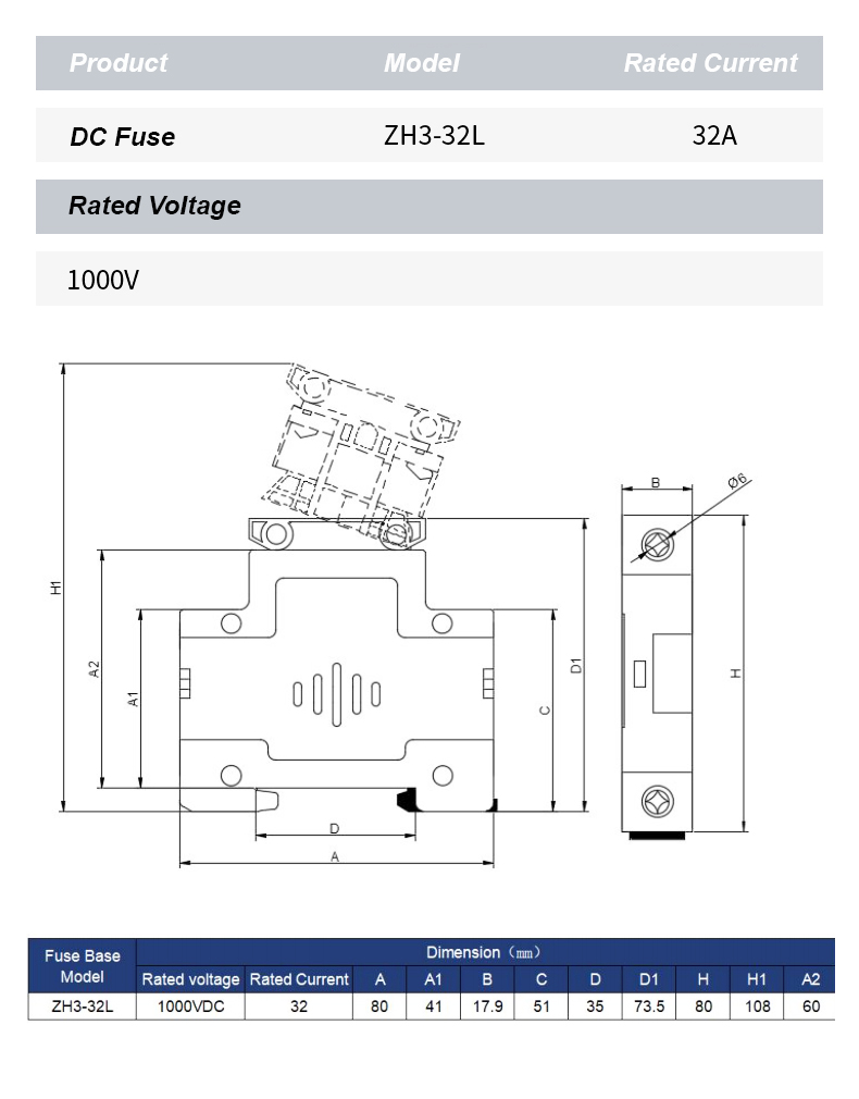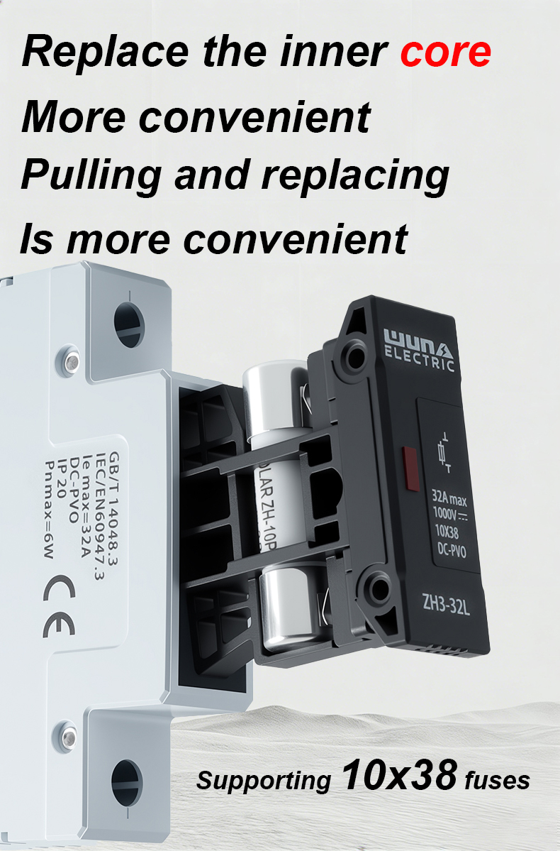 De ZH32L DC 1000V-zekeringhouder is een krachtig onderdeel dat is ontworpen om betrouwbare bescherming te garanderen voor elektrische circuits in fotovoltaïsche en andere DC-toepassingen. Met zijn robuuste constructie en superieure isolatie is de ZH32L DC 1000V-zekeringhouder geschikt voor het veilig huisvesten van zekeringen tot 1000V DC, waardoor schade door overstroom en kortsluiting effectief wordt voorkomen.