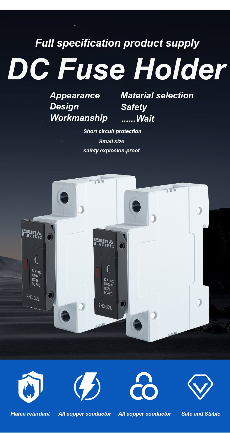 De ZH32L DC 1000V zekeringhouder van fotovoltaïsche cellen is speciaal ontworpen voor gebruik in fotovoltaïsche (PV) systemen, voornamelijk om zonnepanelen te beschermen. De breuktoestand van zonnepanelen is dat, hoewel het defecte zonnecelpakket effectief kapot gaat, dit geen invloed heeft op de werking van andere normaal werkende zonnecelpakketten. De ZH32L DC 1000V zekeringhouderzekering kan de PV-module en zijn geleiders veilig beschermen tegen de dreiging van omgekeerde overbelastingsstroom, ongeacht of de DC-voeding in gevaar is. Met de toenemende vraag naar krachtige zonnecelpakketten op de markt, de promotie en ontwikkeling van fotovoltaïsche systemen en op het windenergienet aangesloten energieopwekkingstechnologie, is het gebruik van hoogspannings-DC-zekeringen om de veilige, op het net aangesloten werking van fotovoltaïsche celsystemen te beschermen, een belangrijke internationale technische maatregel geworden.